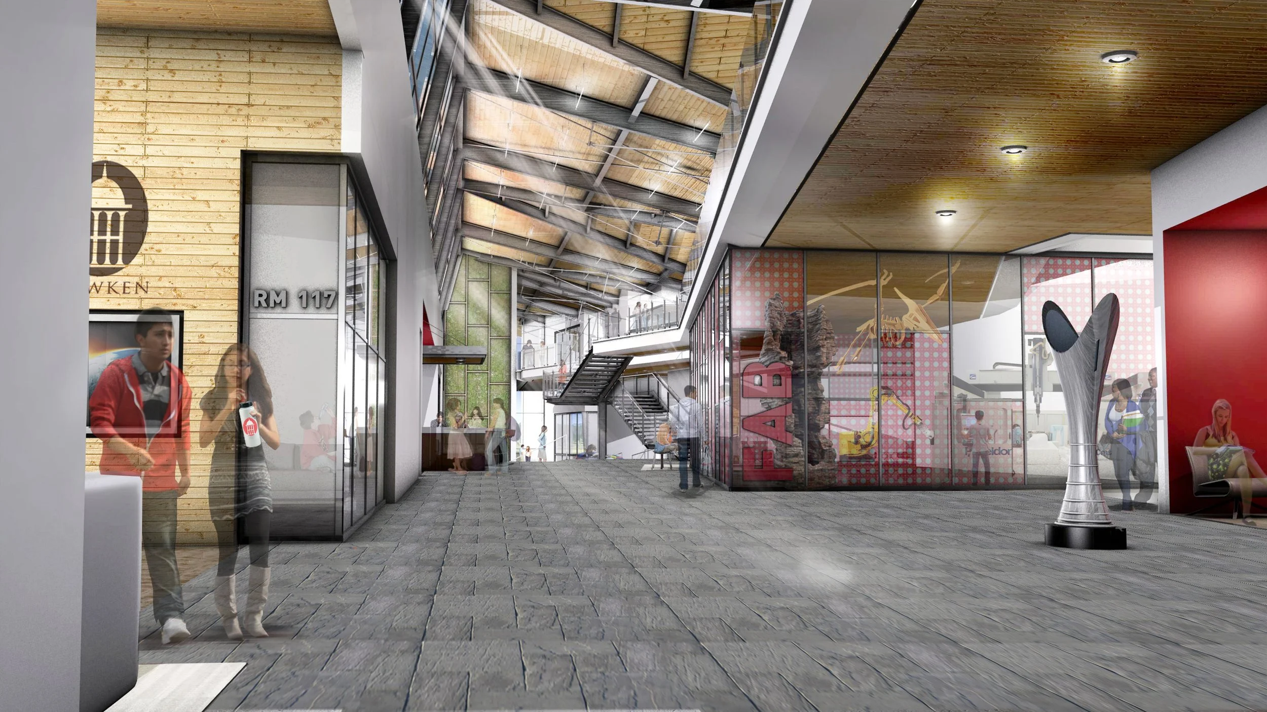 Hawken School is a private k-12 school with multiple campus locations in Cleveland, Ohio. With a mission to "prepare students to navigate a complex and dynamic world with self-confidence and determination, embrace challenges with disciplined analysis and creativity, and engage others with empathy and integrity." Seeking to cultivate an innovative problem-based curriculum, Hawken Brown contacted studioTECHNE to envision a learning design center. Our Design Approach